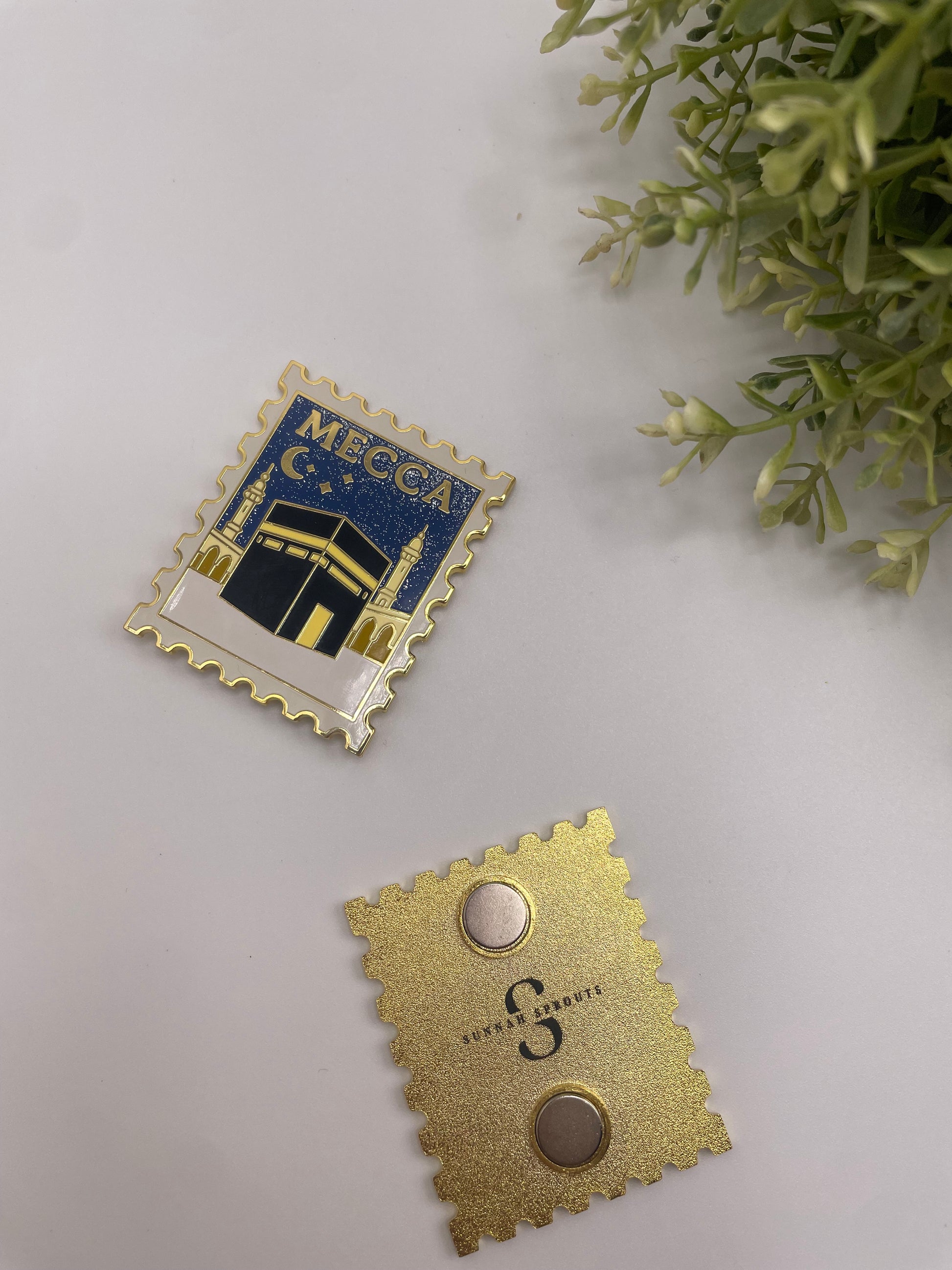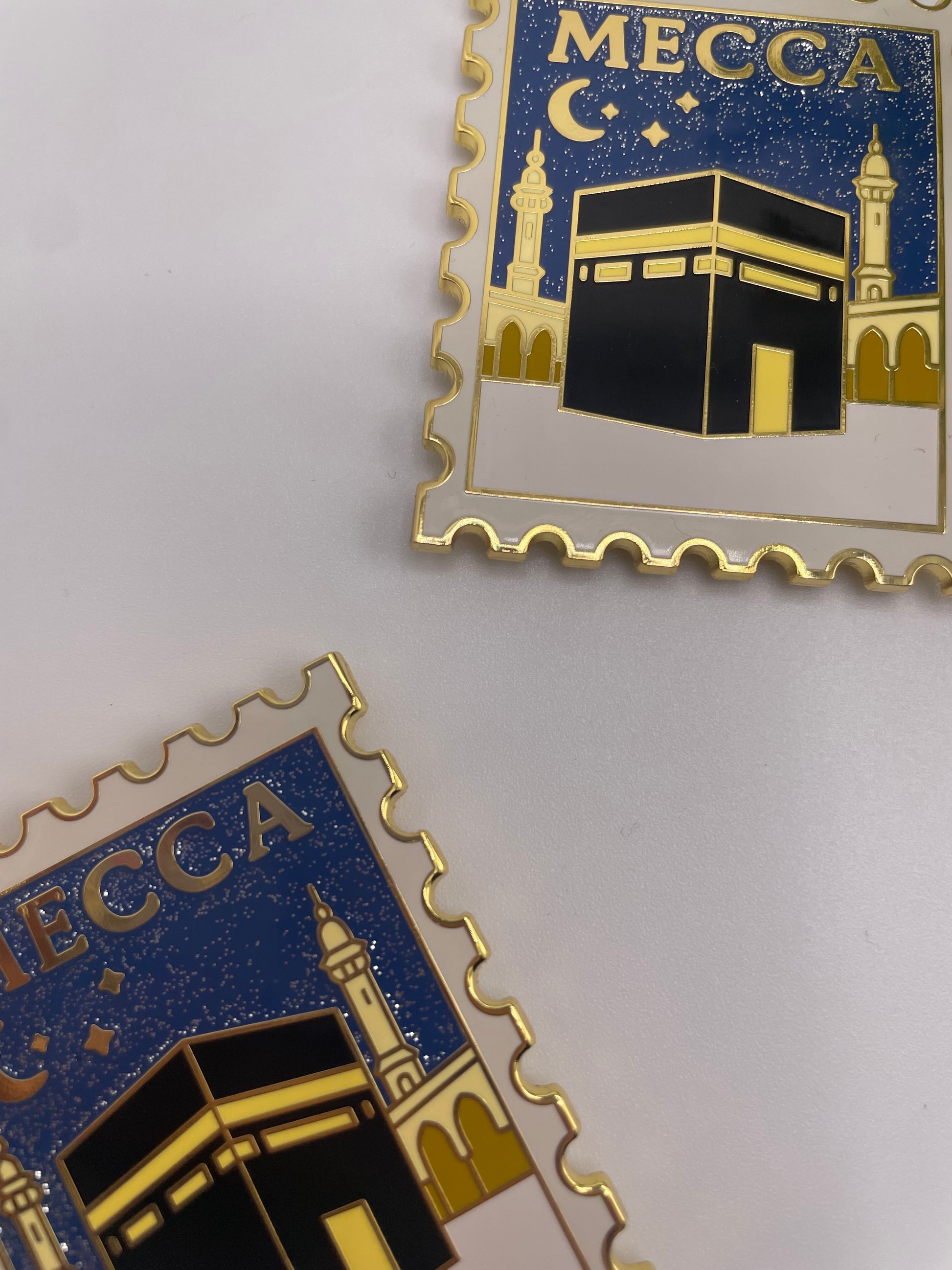 This Mecca Stamp Hard Enamel Magnet is a quiet reminder of the Kaaba and the place our souls turn to every day. Designed like a vintage postage stamp, it captures the Kaaba beneath a peaceful night sky symbolizing longing, distance, and the hope of one day standing there.